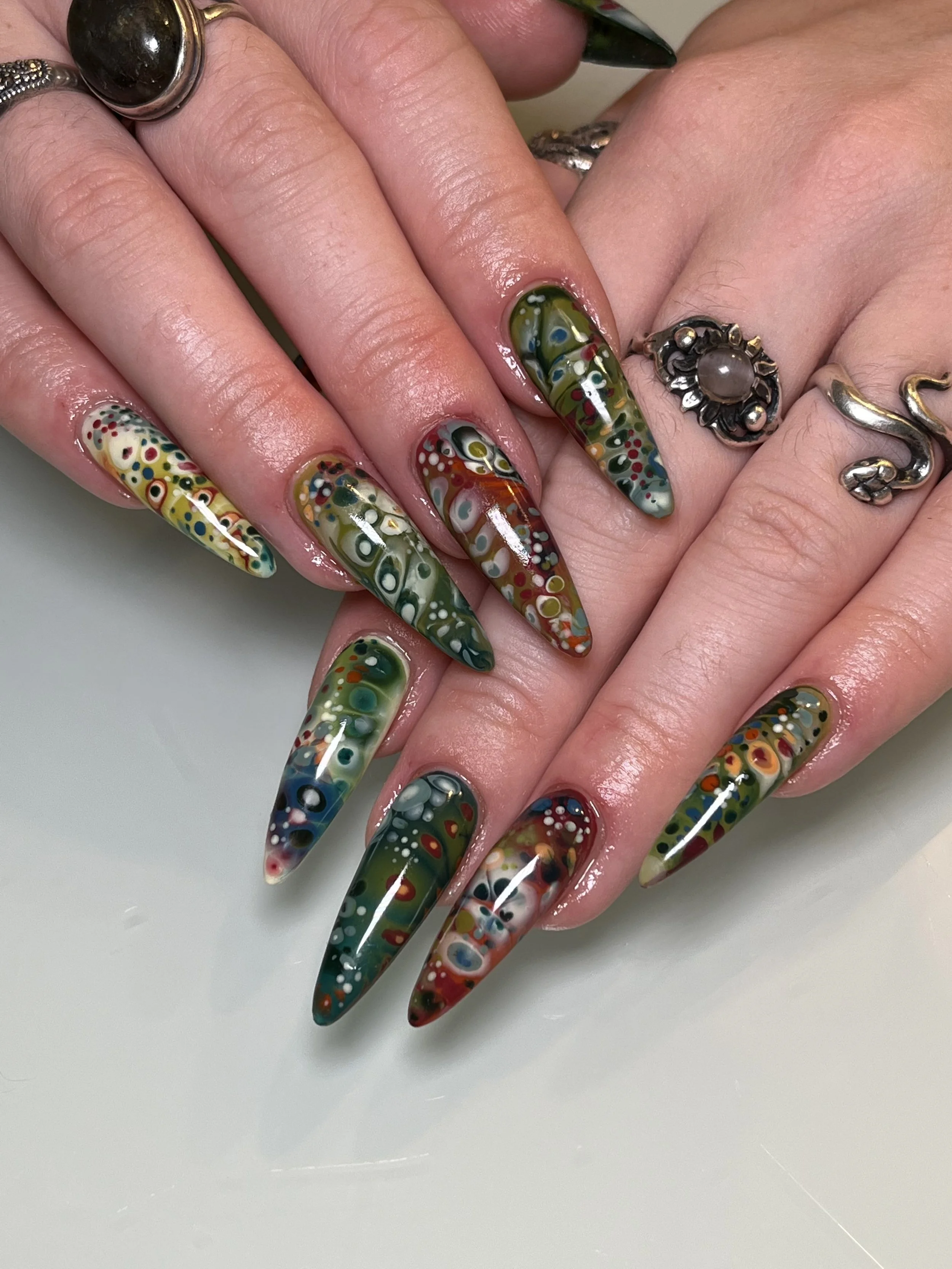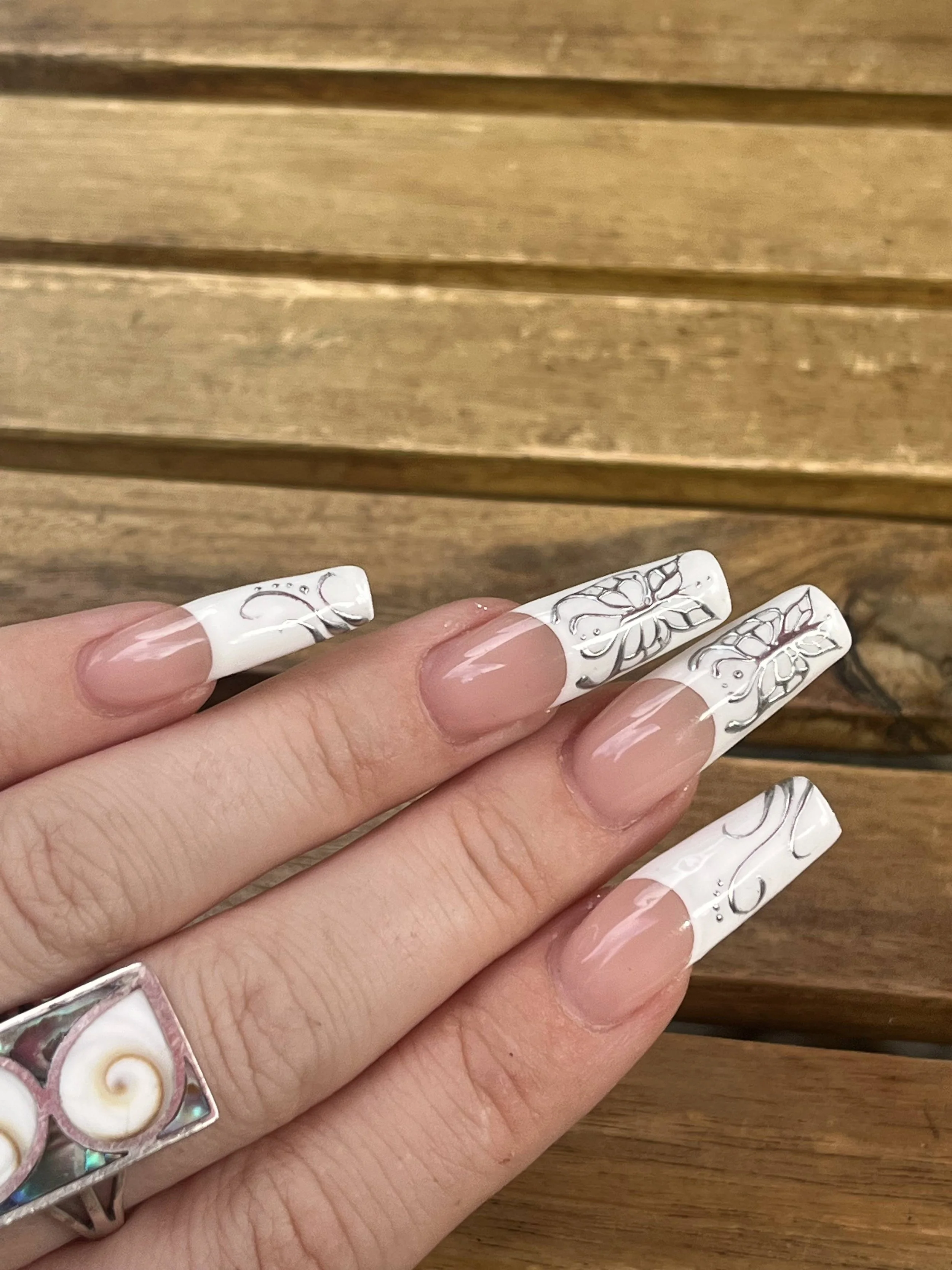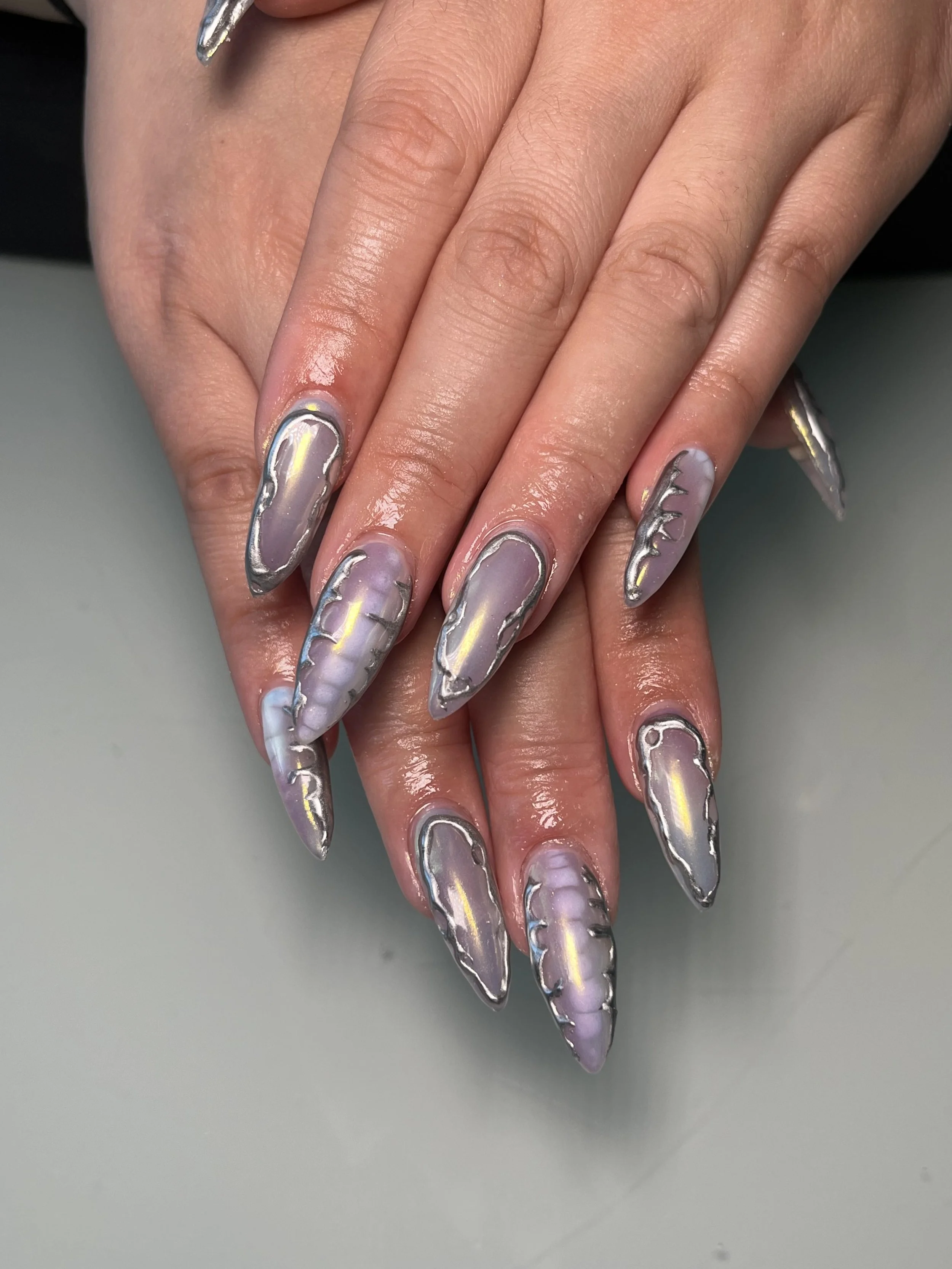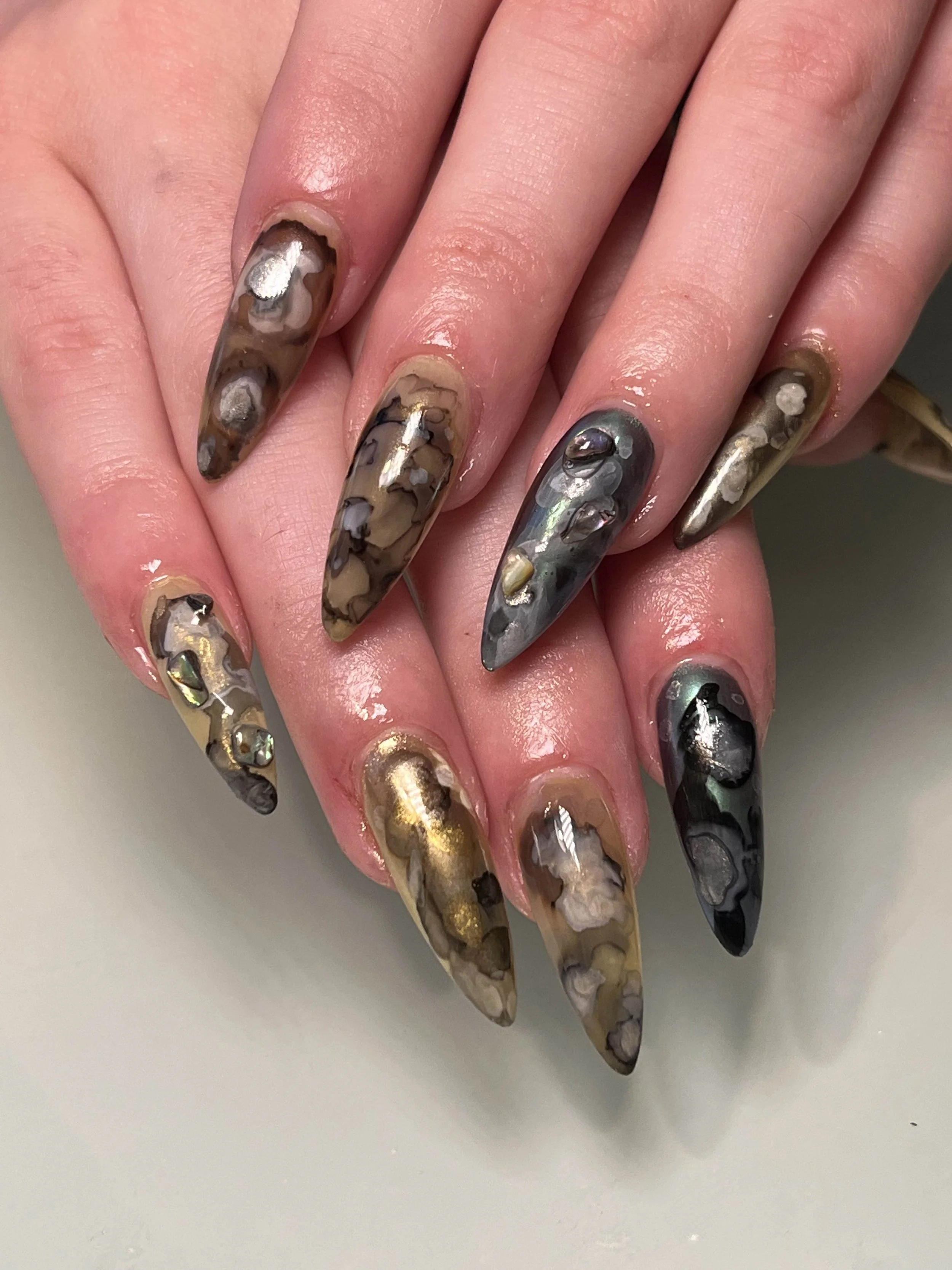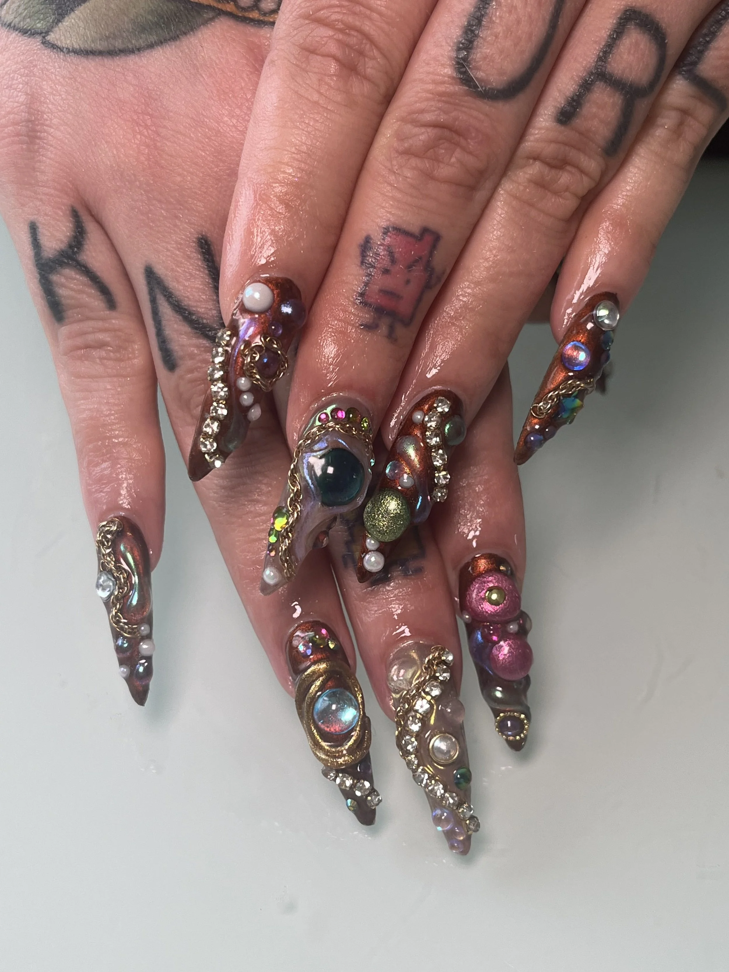 dry manicure, simple color designs, and/or minimal 3d gel/ charms